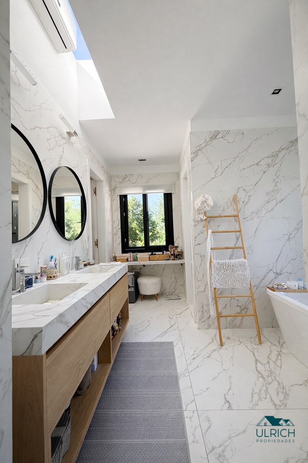 Calefacción por losa radiante. Aberturas DVH. Aires acondicionados en todos los ambientes. Pisos de travertino. Impecable estado.