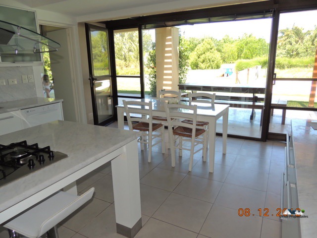 Amplia galería, sectorizada, zona de parrilla con pérgola de maderaC/ estructura de vidrio y aluminio. Maravilloso jardín con las mejores vistas del barrio con sistema de riego automático y canalización par iluminación. Pileta c/luces