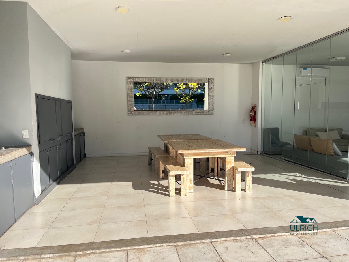 Living/comedor con cocina integrada, dormitorio y baño completo. Balcón amplio con parrilla. Cochera cubierta. BAULERA.