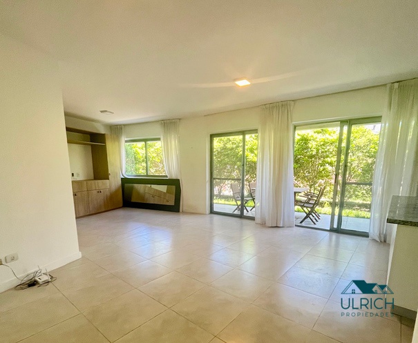 Departamento en venta en Planta Baja con jardín de 2 ambientes muy amplio con la posibilidad de cerrar el living y armar un segundo dormitorio. Living comedor, cocina integrada con barra, lavadero. Baño completo con ducha. Dormitorio en suite con vestidor y baño completo. Aires acondicionados. Cortinas.