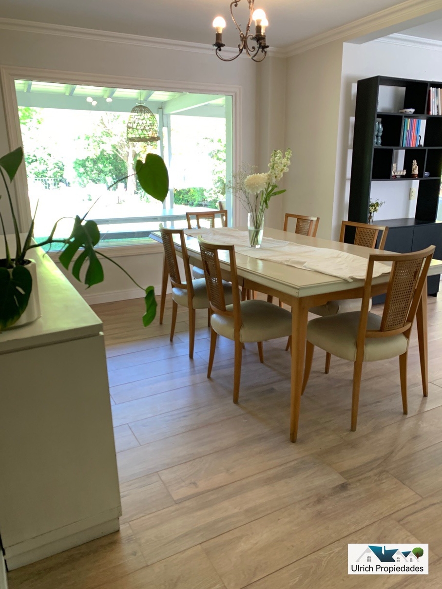 PB: Hall de entrada, living y comedor, toilette. Cocina amplia con comedor diario y playroom, con aire acondicionado. Dependencia de servicio. Lavadero. Tiene freezer y lavaplatos.