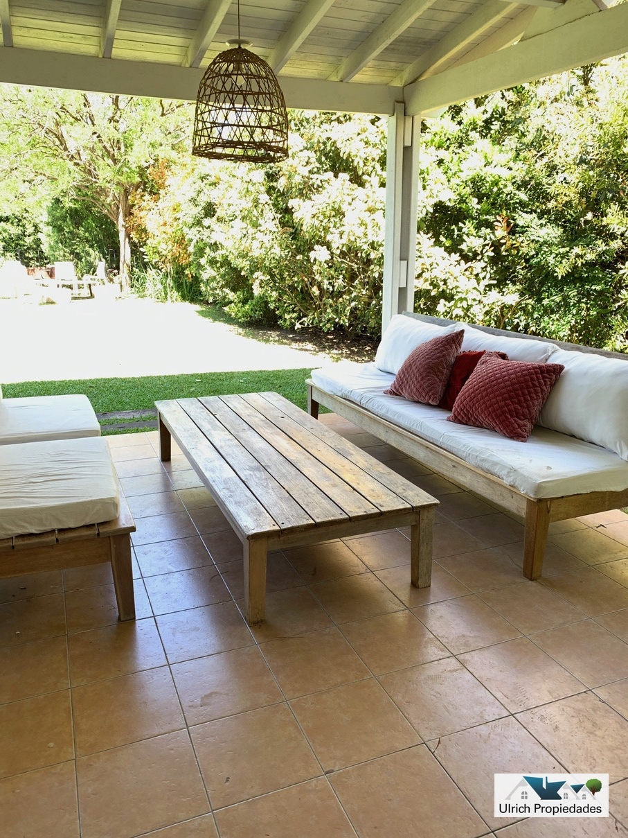 Exterior: Jardín amplio con pileta y riego automático. Galería con parrilla y living exterior.