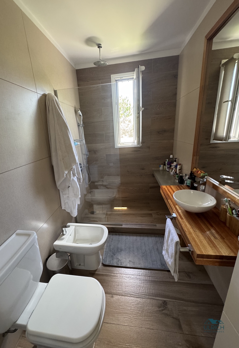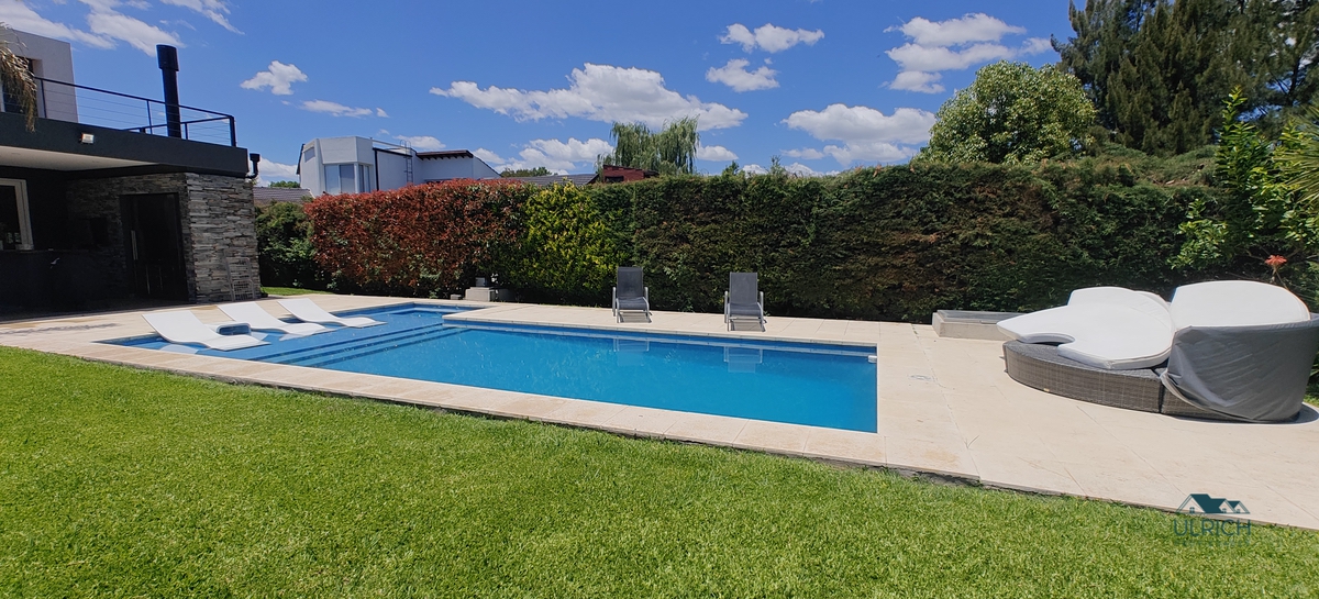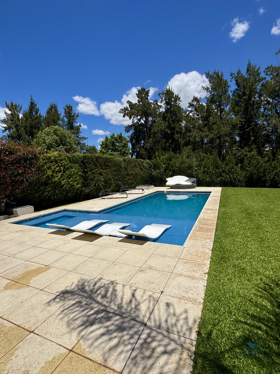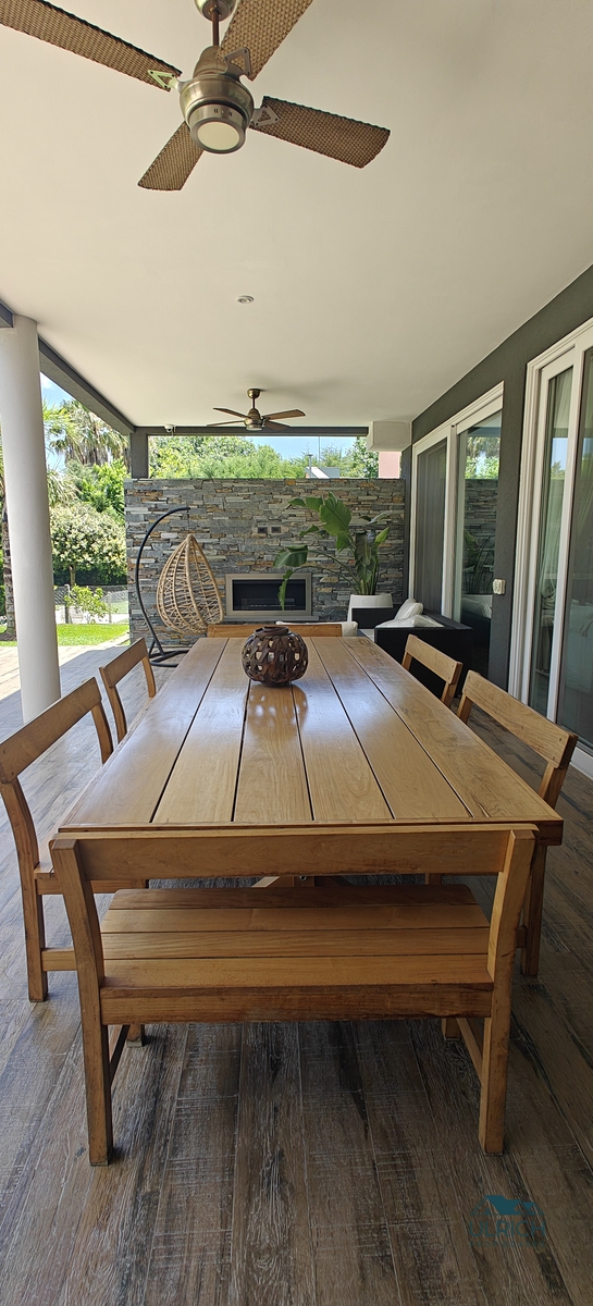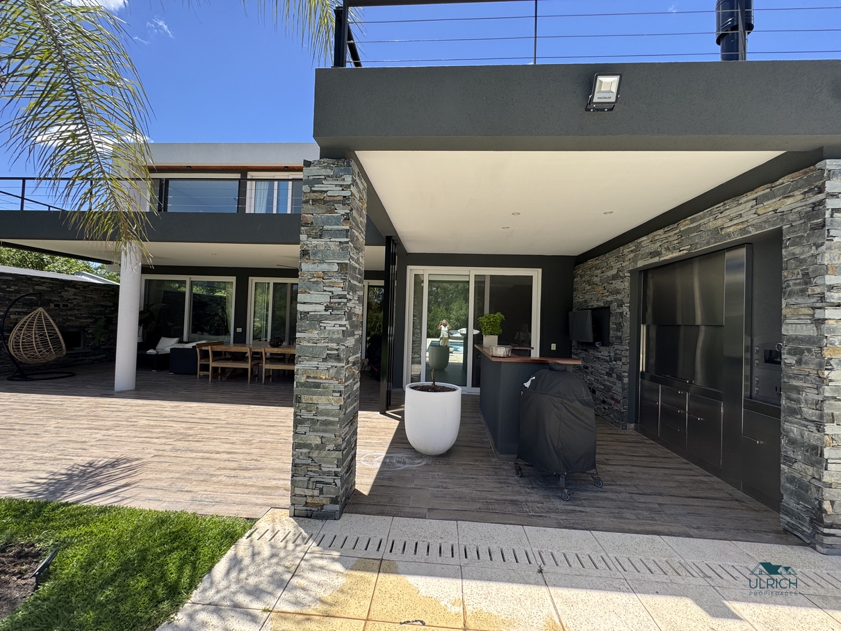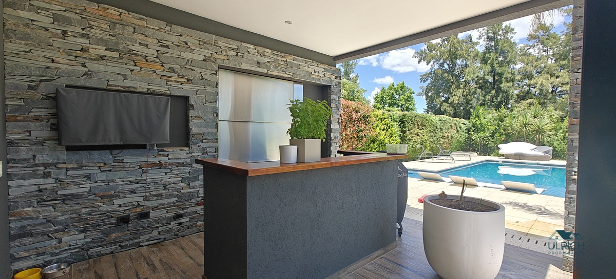 Exterior: Amplia galería con parrilla horno tipo Tromen, toilette exterior, espacio para colgar ropa. Pileta recubierta con venecitas, playa húmeda y solarium. La casa cuenta con espacio guardacoches para 4 autos.