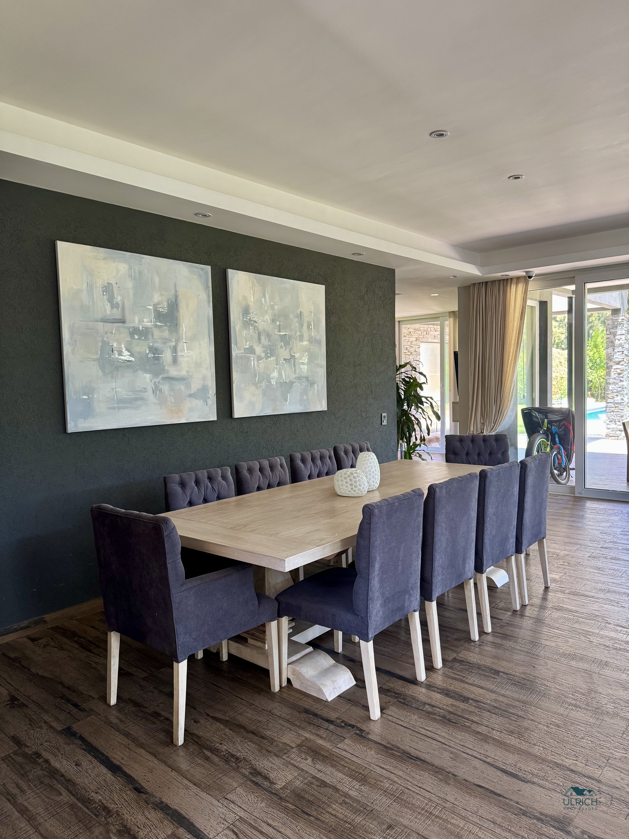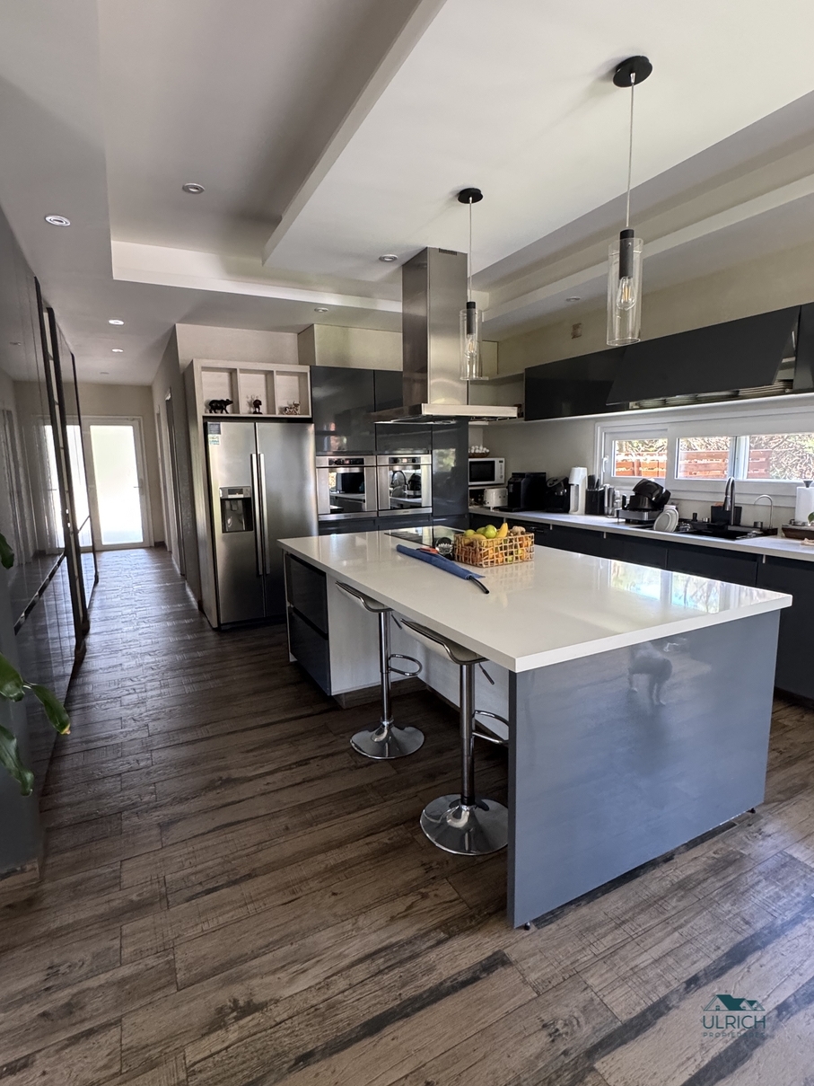 PB: Amplia recepción con importante living- comedor, toilette y playroom. Moderna cocina integrada al comedor diario. El área de servicio cuenta con un lavadero, habitación con baño completo y placard de guardado.