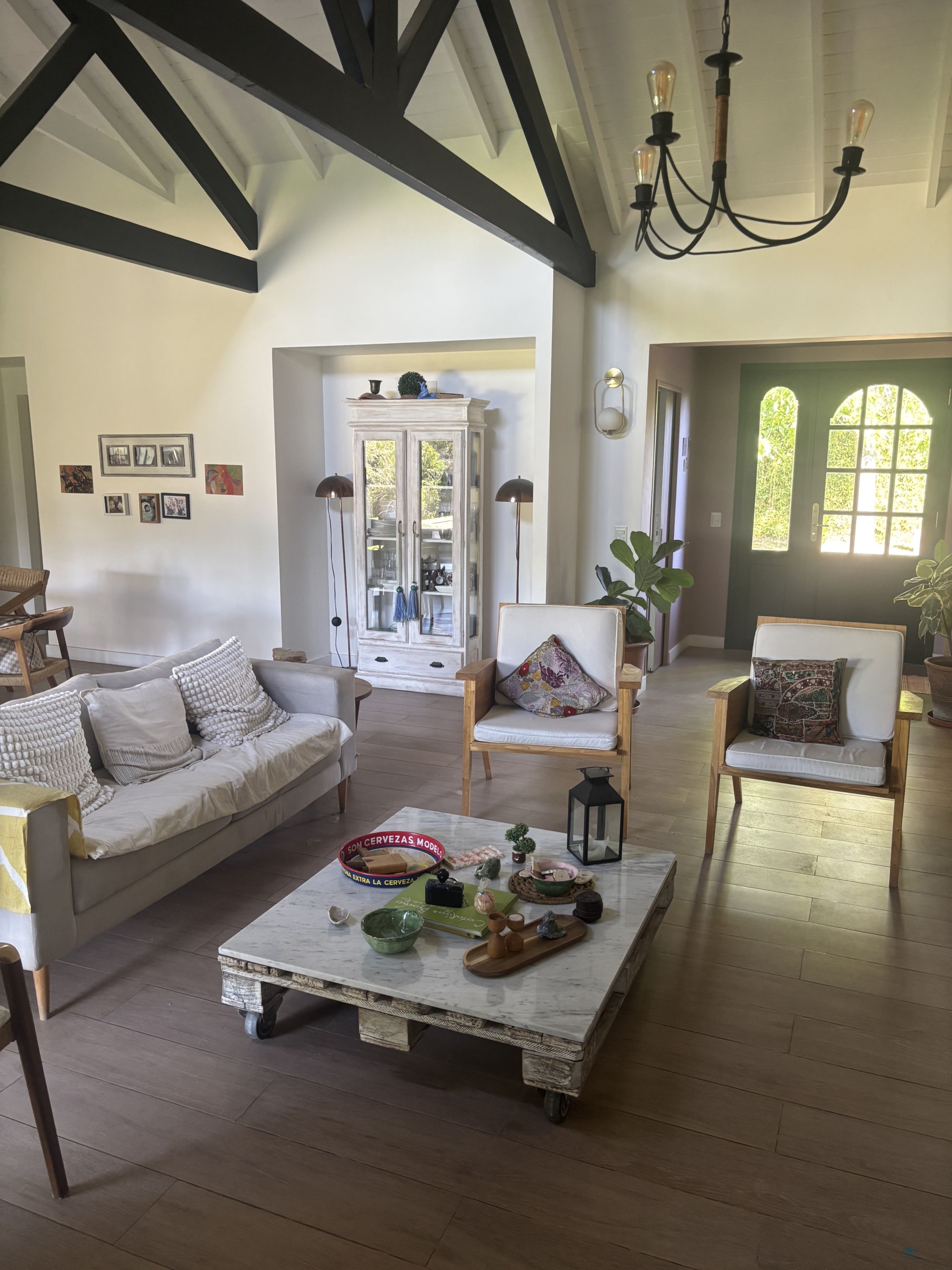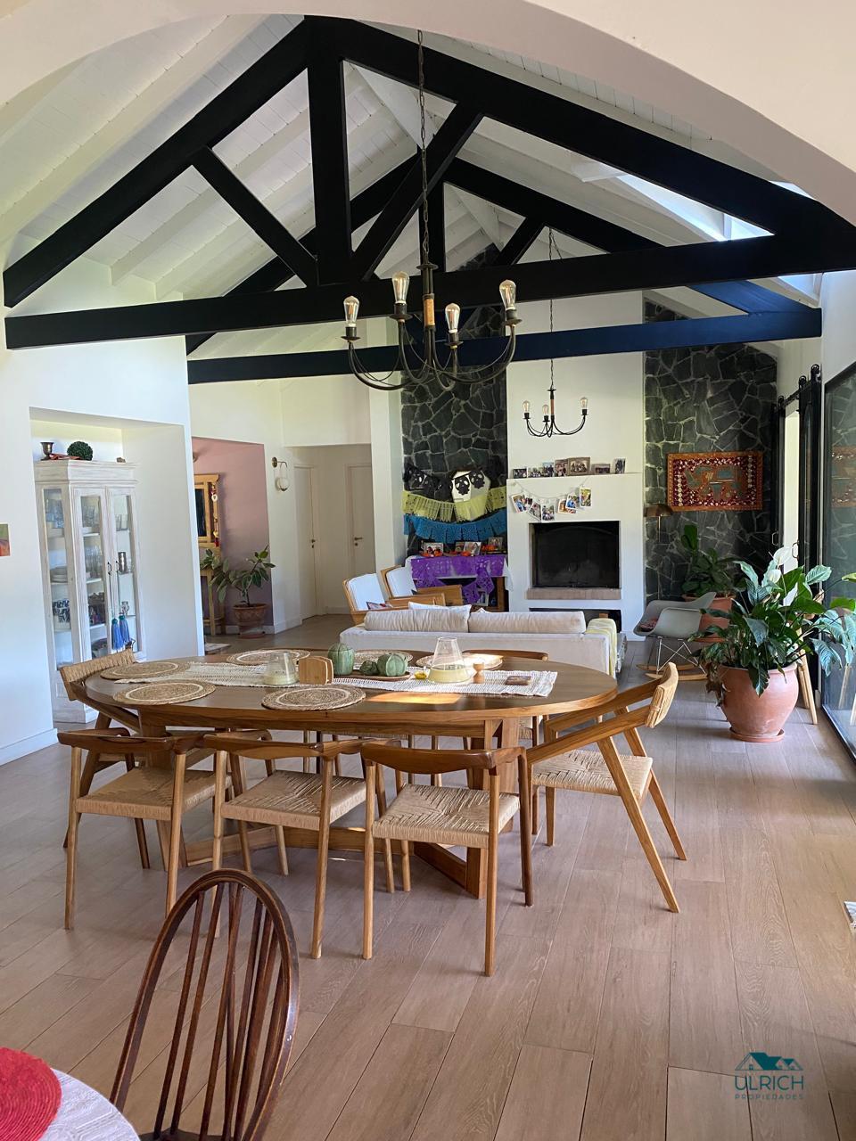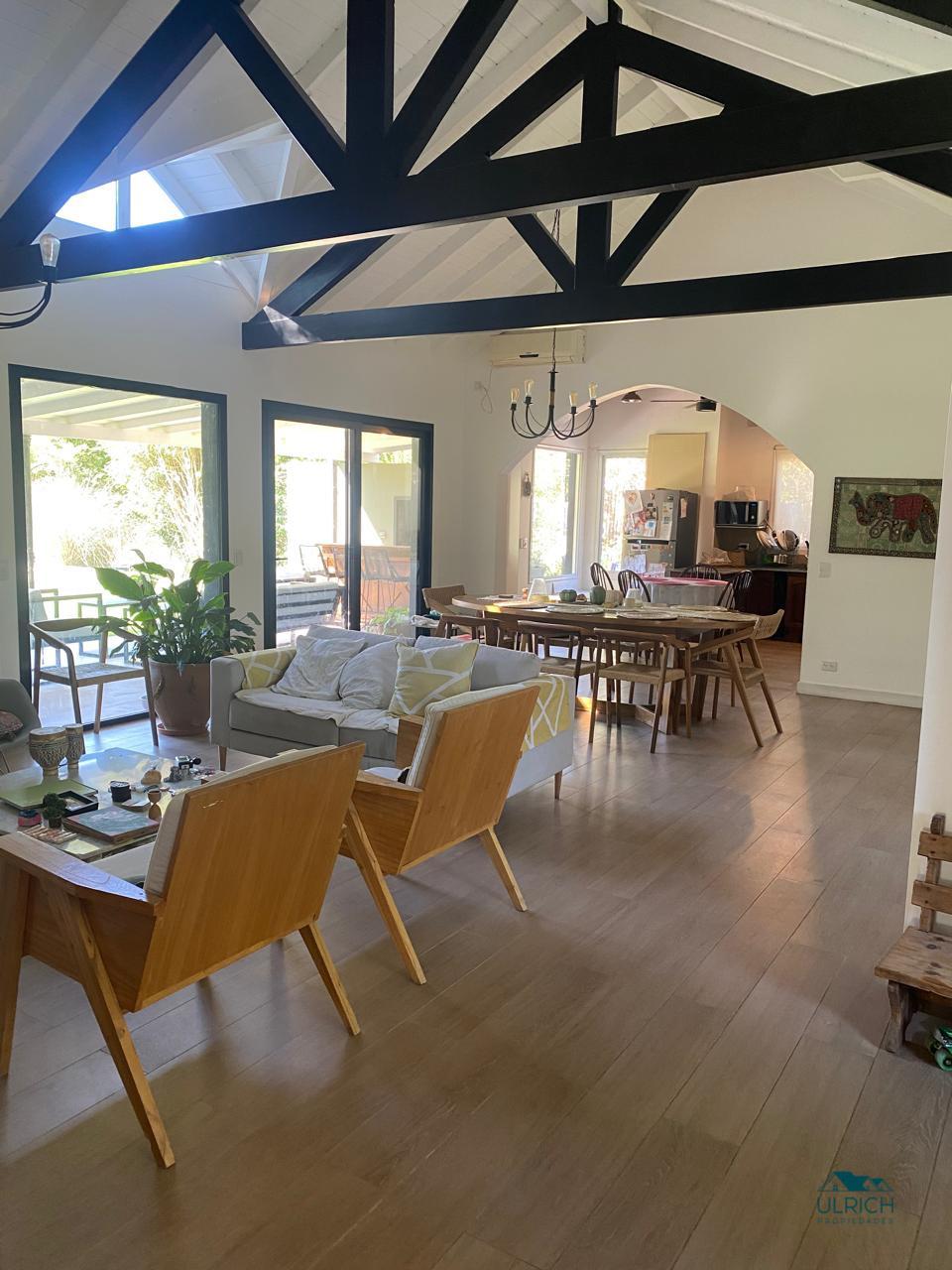 Interiores: Cuenta con un living y comedor integrados, con hogar a leña y ventanales al jardín, que generan una gran conexión con el exterior. La cocina, moderna e integrada, se comunica con el área de servicio que incluye lavadero independiente y baño completo.