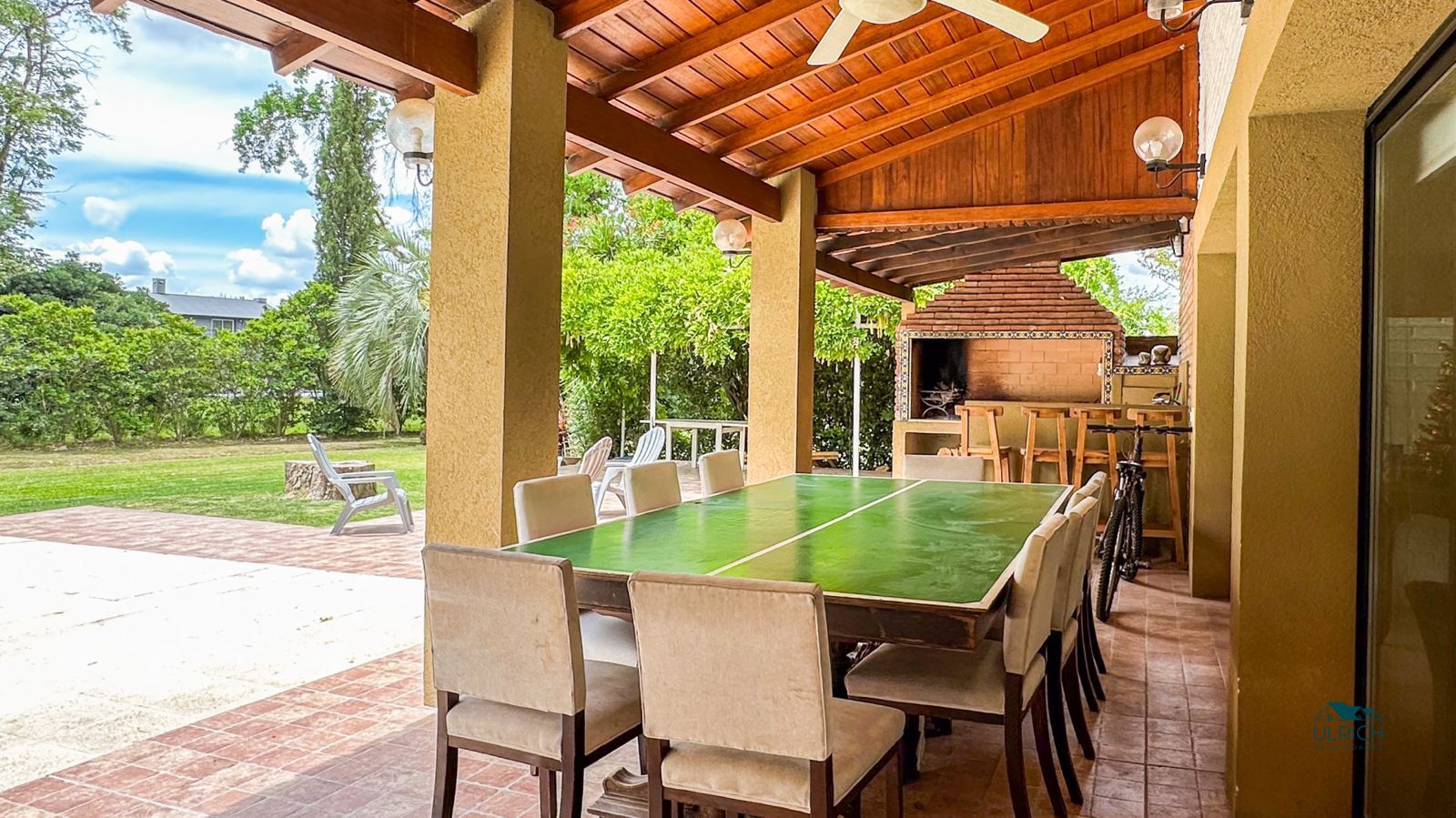 Amplia casa de 230 m2 desarrollada en una planta en lote de 1000 m2, con un amplio living-comedor con hogar, y ventanales corredizos. Cuenta además con tres dormitorios, dos baños y dependencias. Cocina reciclada. Amplia galería semi-cubierta, con parrilla y barra.