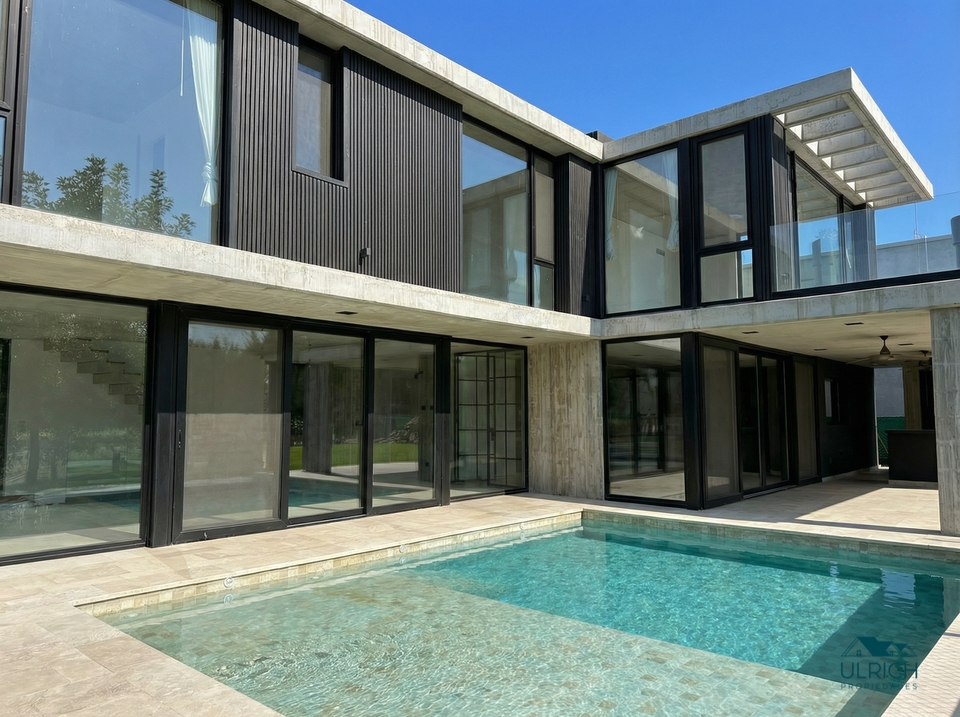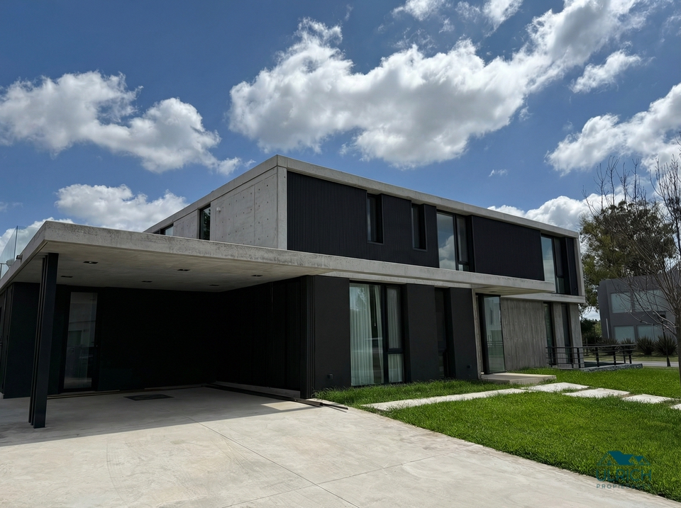 Imponente casa de 404 m2 totales y 367 m2 cubiertos, de estilo racionalista desarrollada en tres niveles: planta baja, planta alta y subsuelo, sobre un lote central de 583 m², con orientación Norte y vista directa a la laguna. La propiedad combina estructura de hormigón, diseño contemporáneo y excelentes detalles de terminación, logrando una propuesta moderna y funcional en uno de los entornos más exclusivos de Pilar.