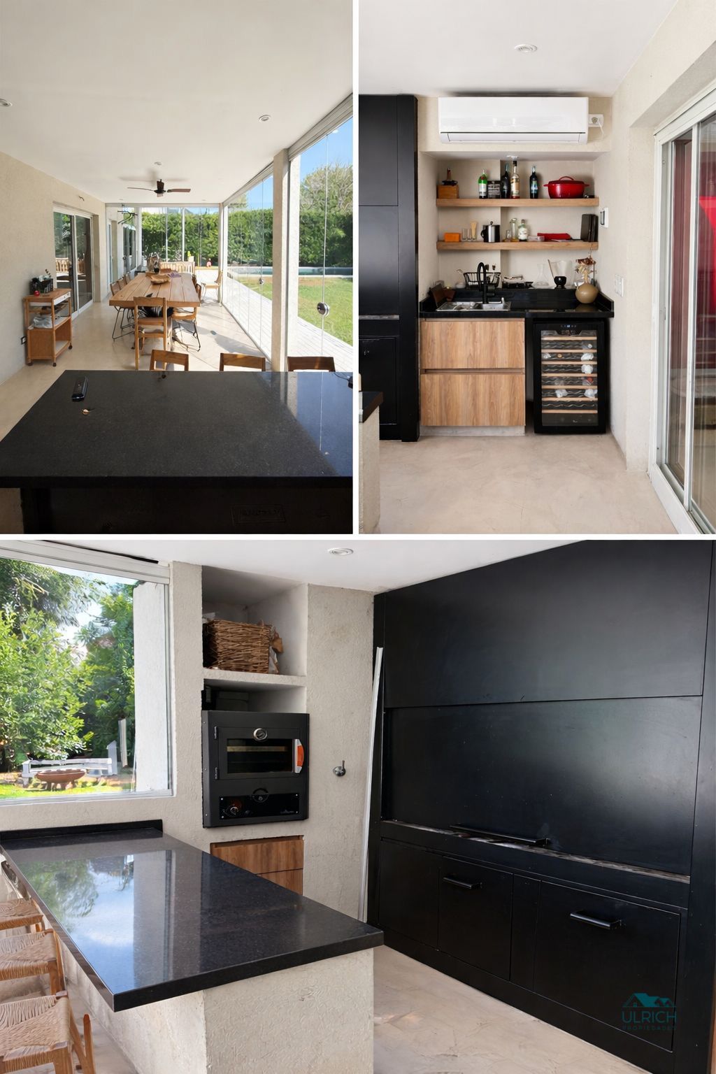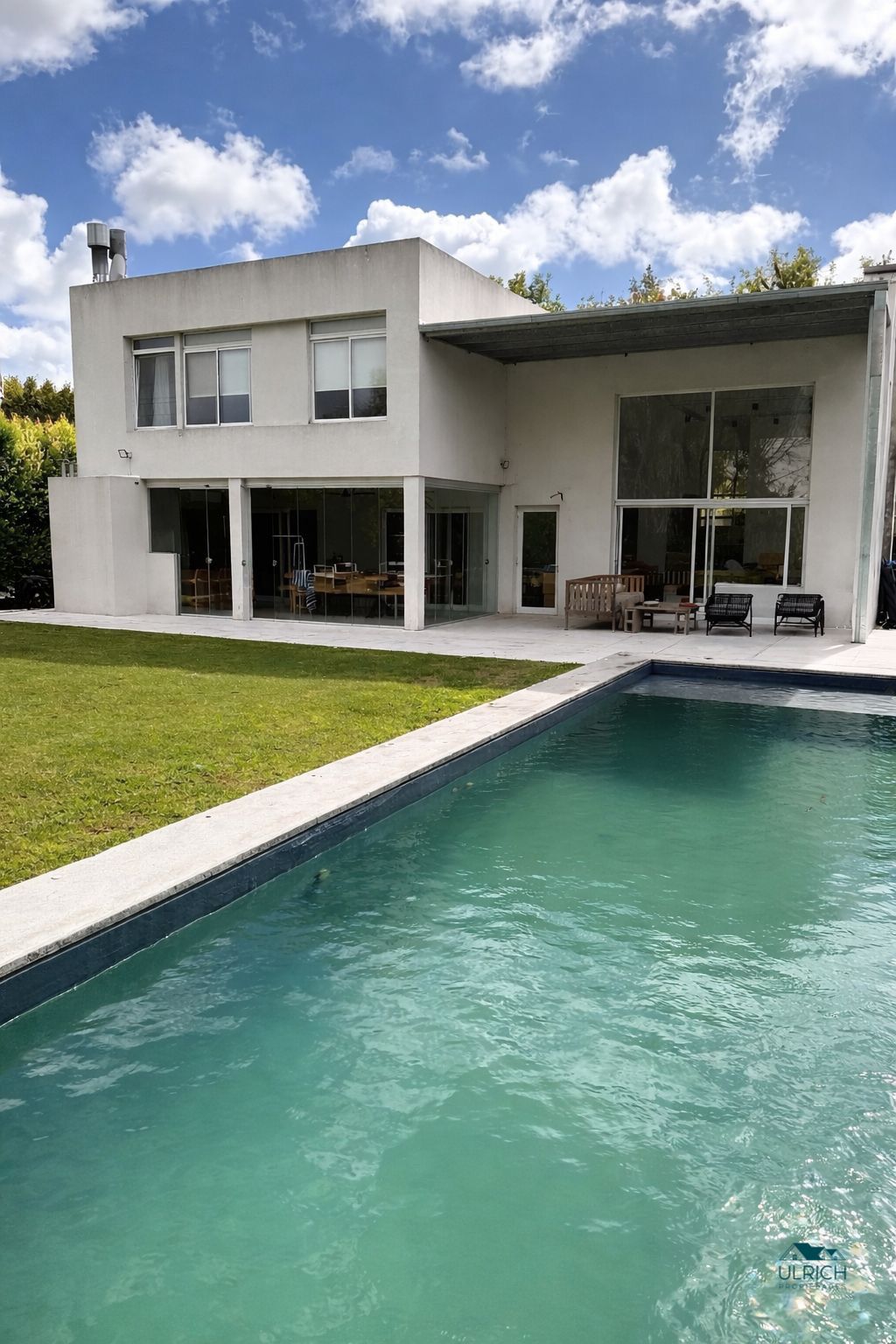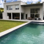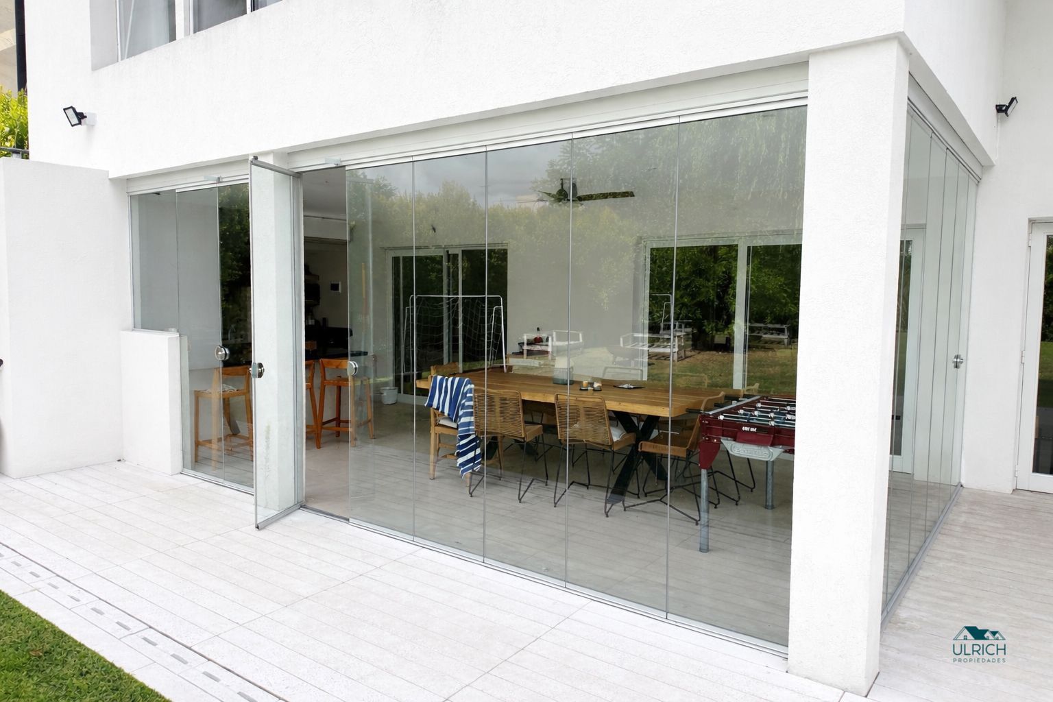 Exterior. Galería con parrilla cerrada con cerramiento de vidrio. Jardín con pileta.