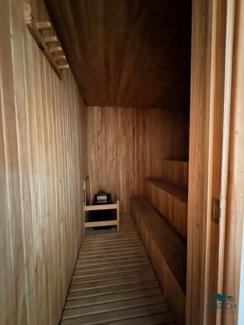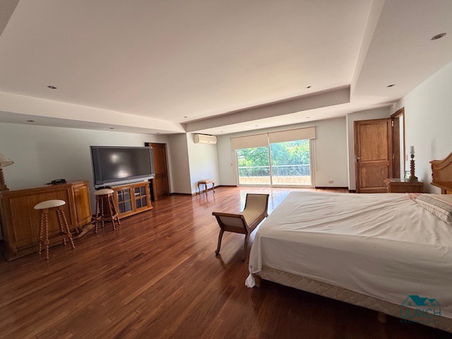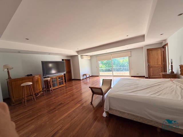 Hall de entrada, toilette, living y comedor, dos cocinas muy amplias, playroom, dos cuartos con un baño, escritorio, cuarto principal en suite muy amplio y luminoso con un gran vestidor, sauna y sala de masajes, baño muy amplio con ducha y jacuzzi, garage cerrado.