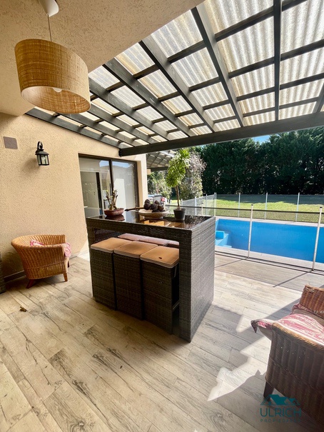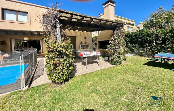 Exterior: Galería techada, parrilla. Jardín con pileta.