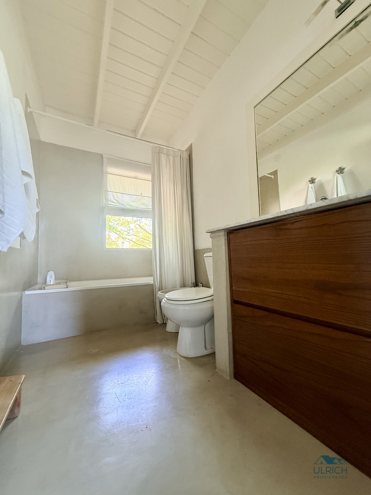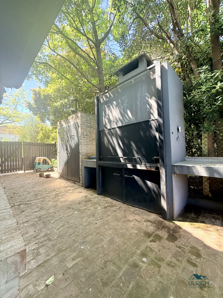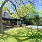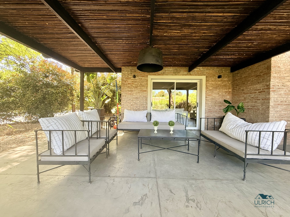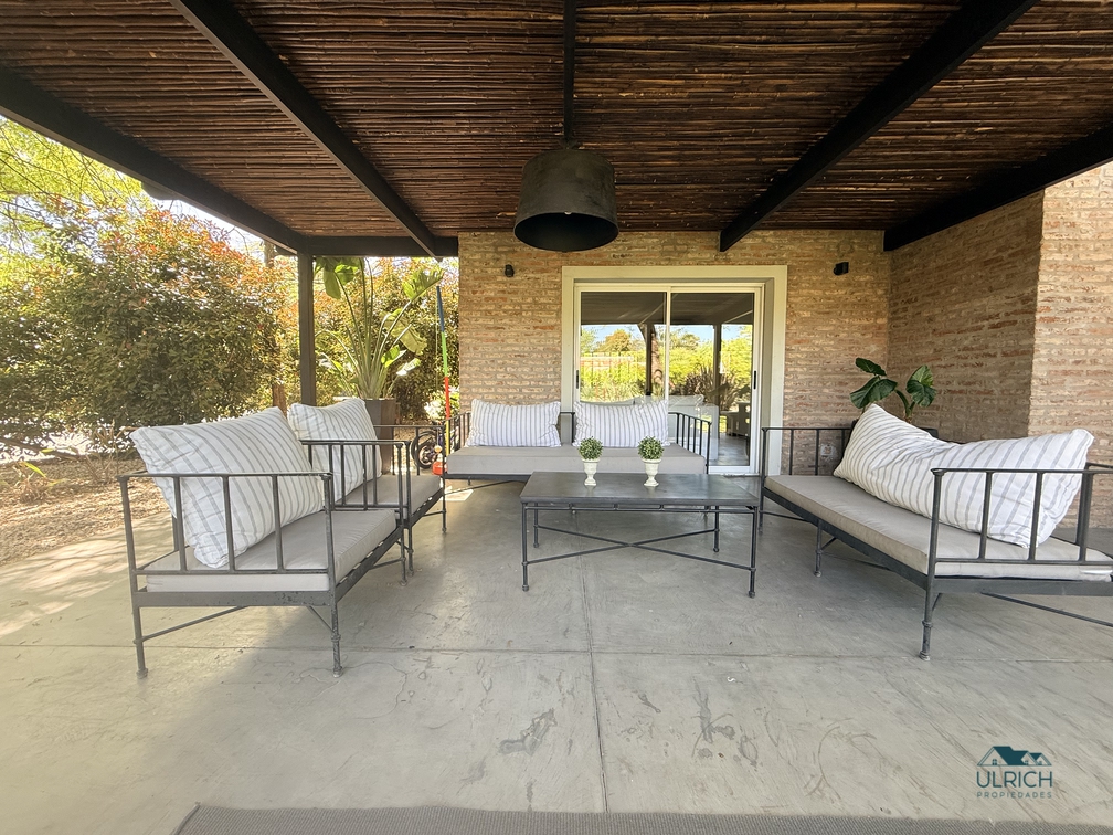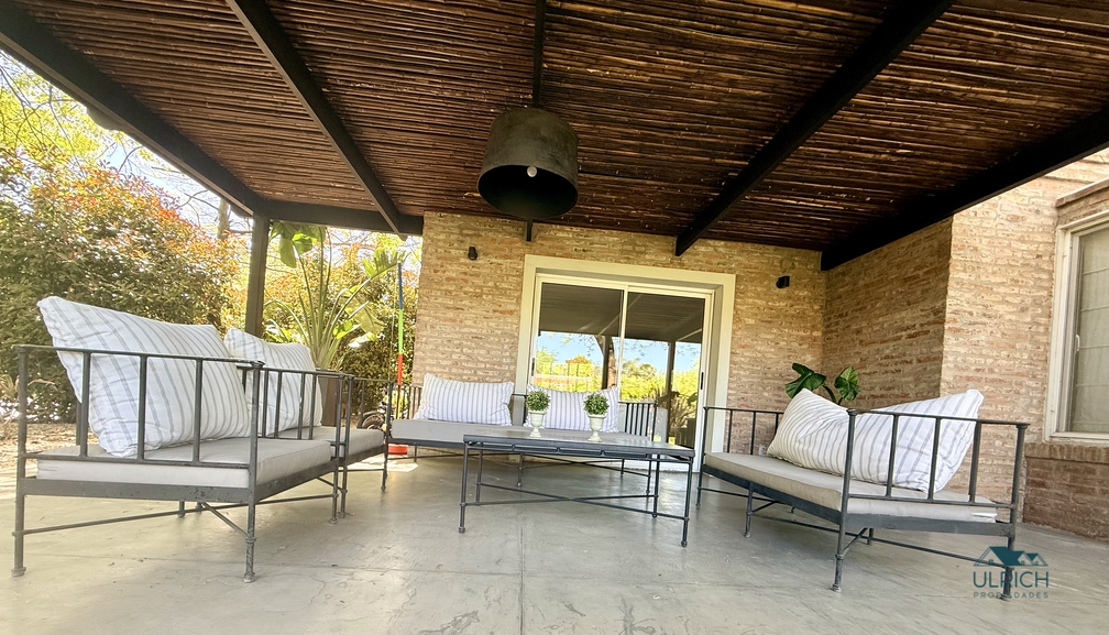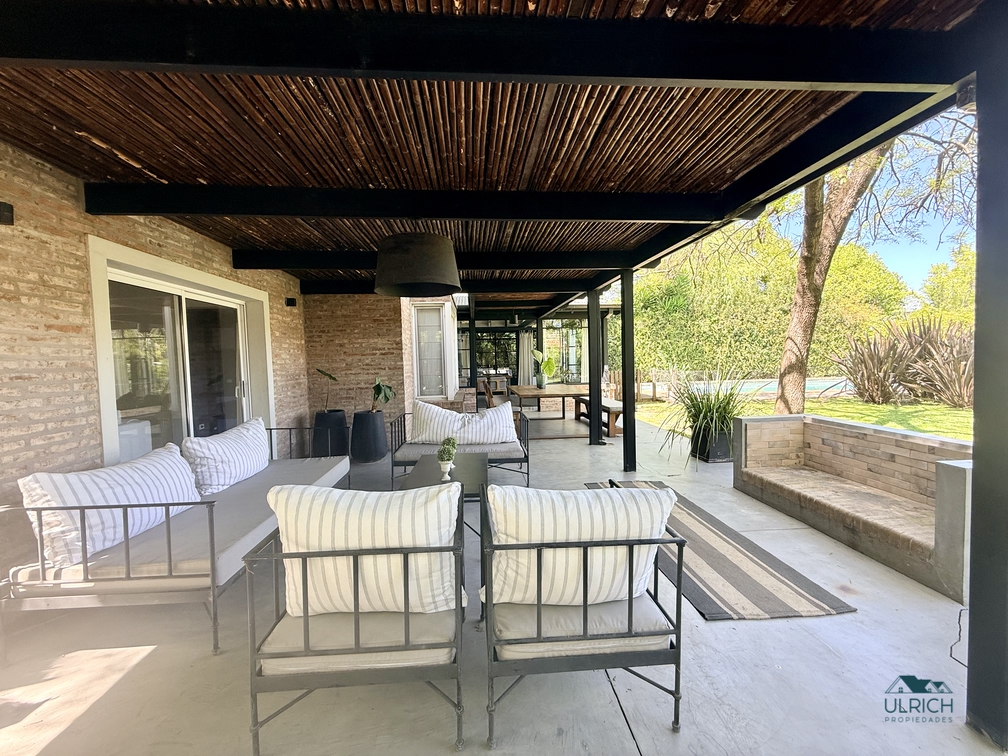 Afuera, la casa se abre a un entorno soñado: una galería con fogonero, pileta y un jardín enorme que rodea toda la propiedad, ideal para disfrutar del sol y el aire libre todo el año.