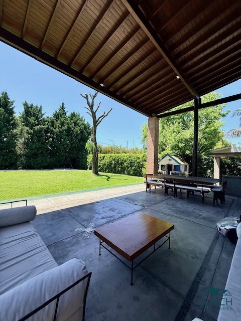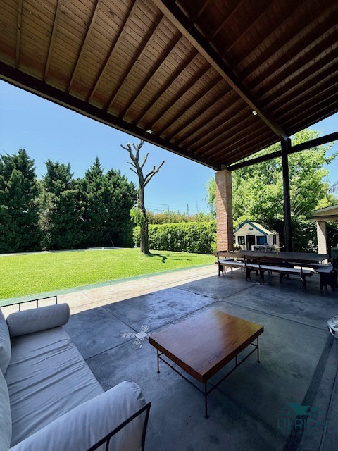 EXTERIOR: AMPLIA GALERIA CON EL MISMO PARRILLA -JARDIN PARQUIZADO .