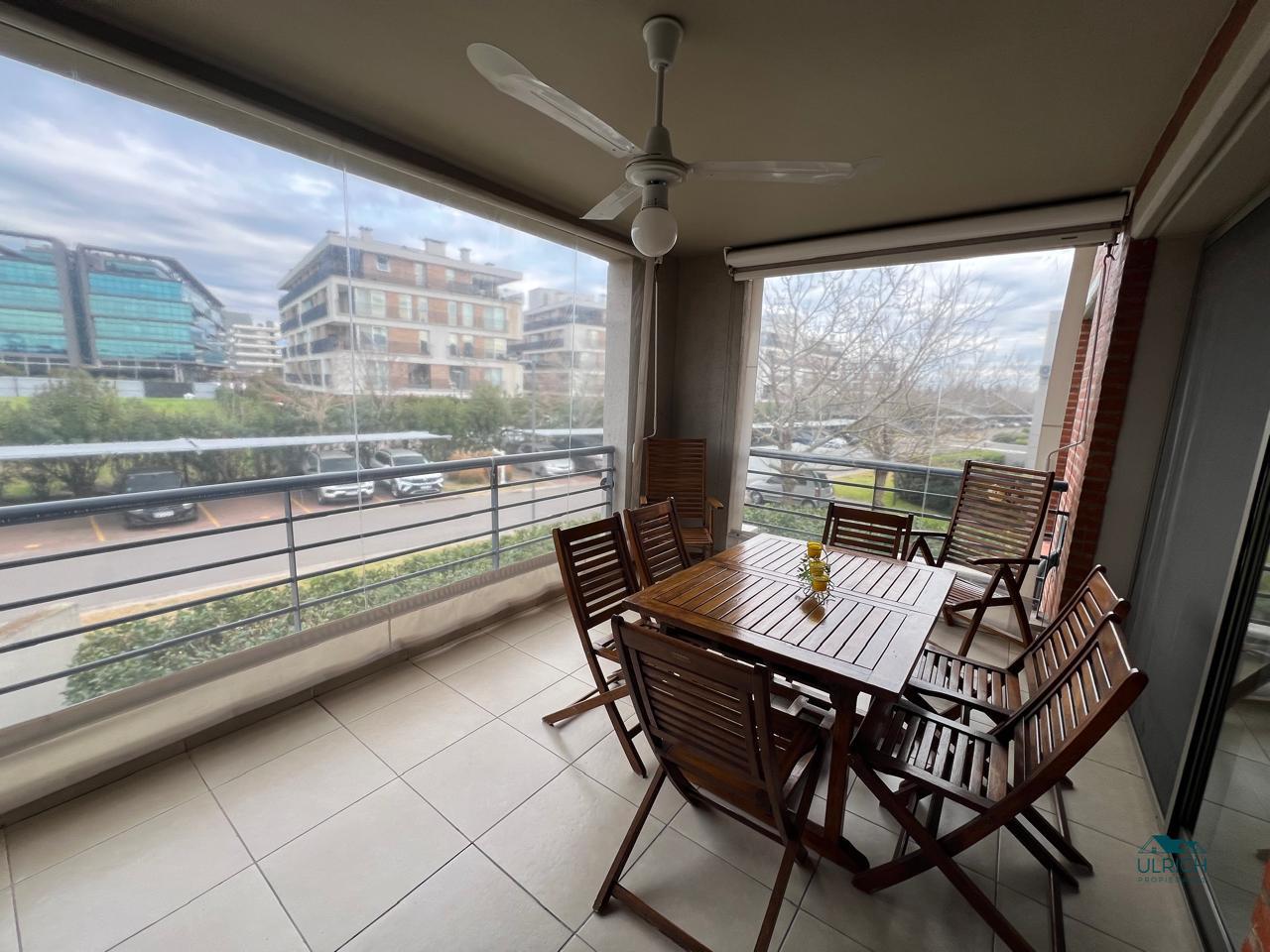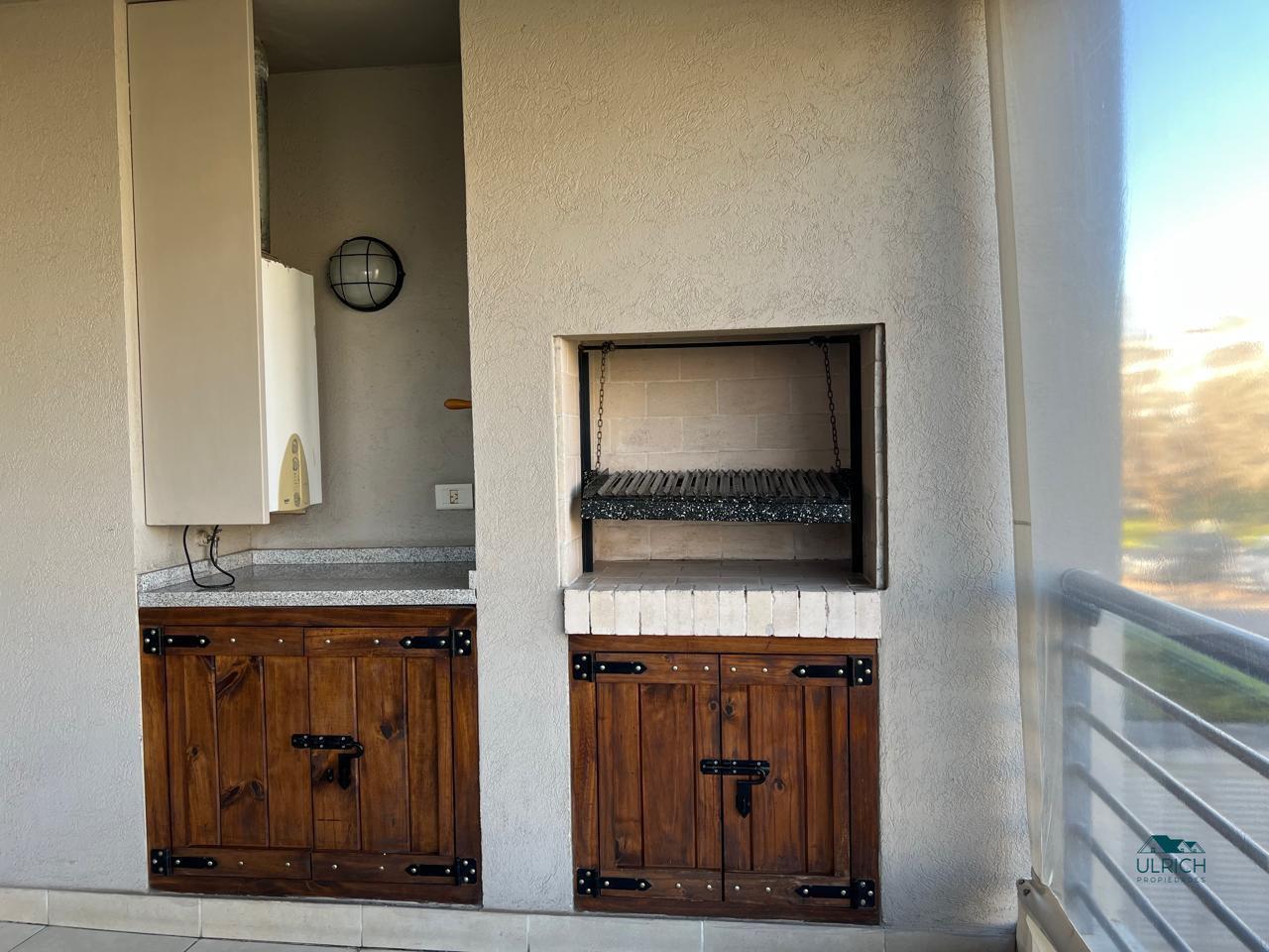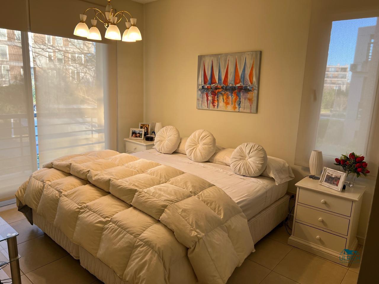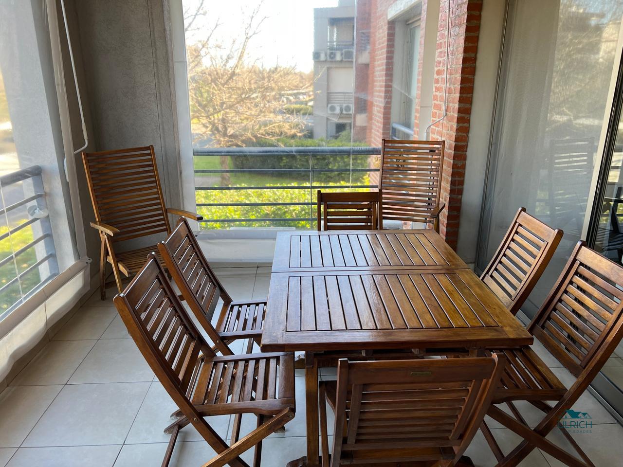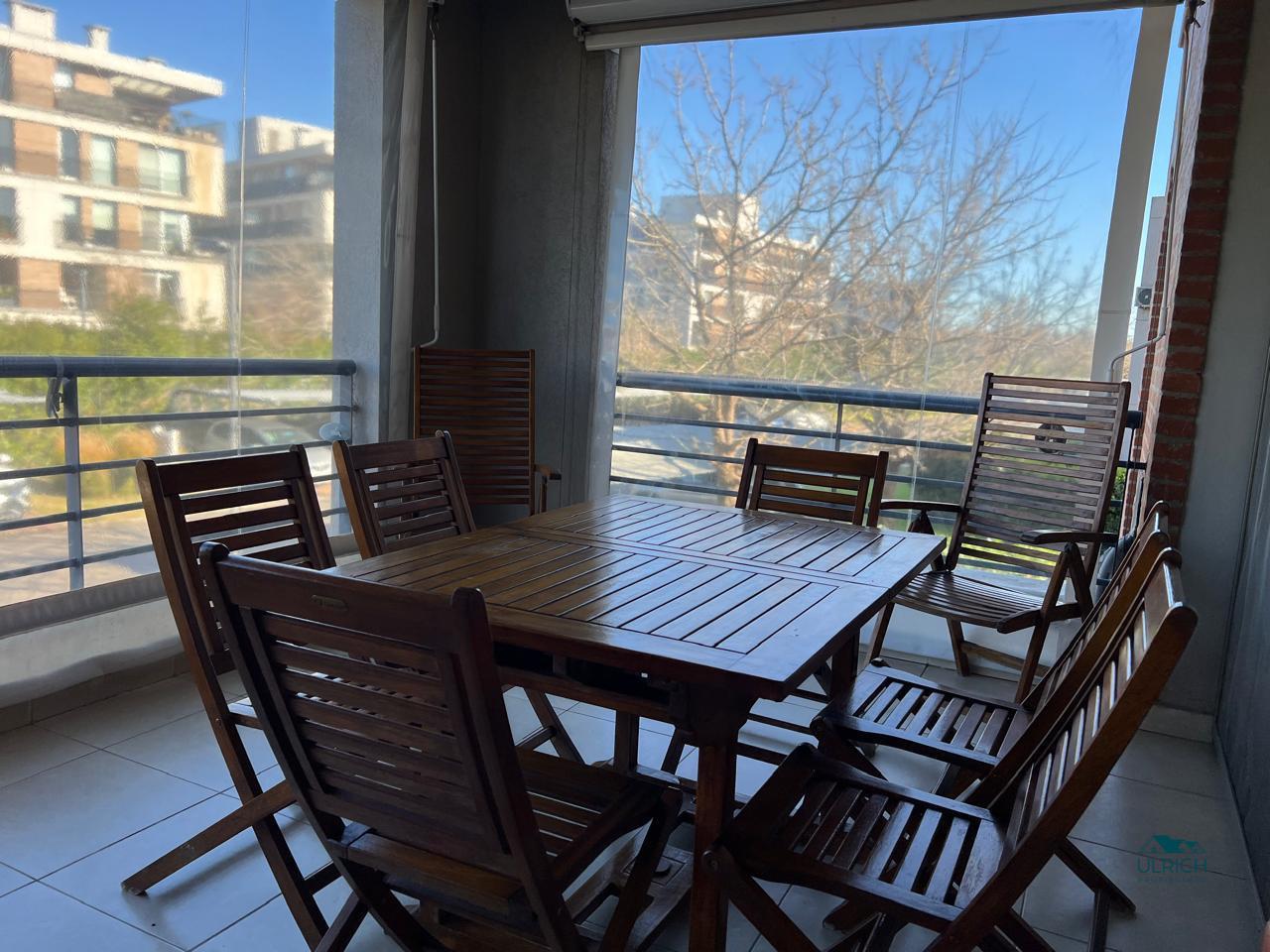 Hall de entrada , Living comedor con salida a balcón Terraza, un cuarto , baño completo, cuarto ppal en suite con vestidor, cocina muy bien equipada, balcón con parrilla y muebles de guardado.El departamento se encuentra en excelente estado de conservación, casi sin uso, horno y anafe sin estrenar. Posee calefacción a través de losa radiante con caldera individual, y A/A.