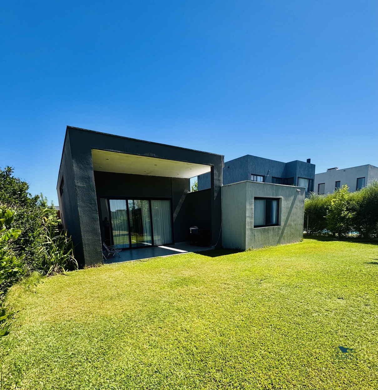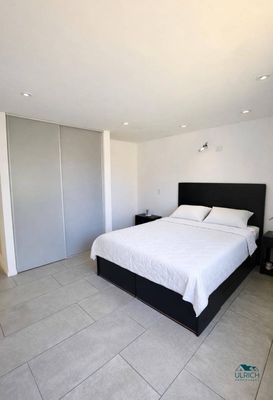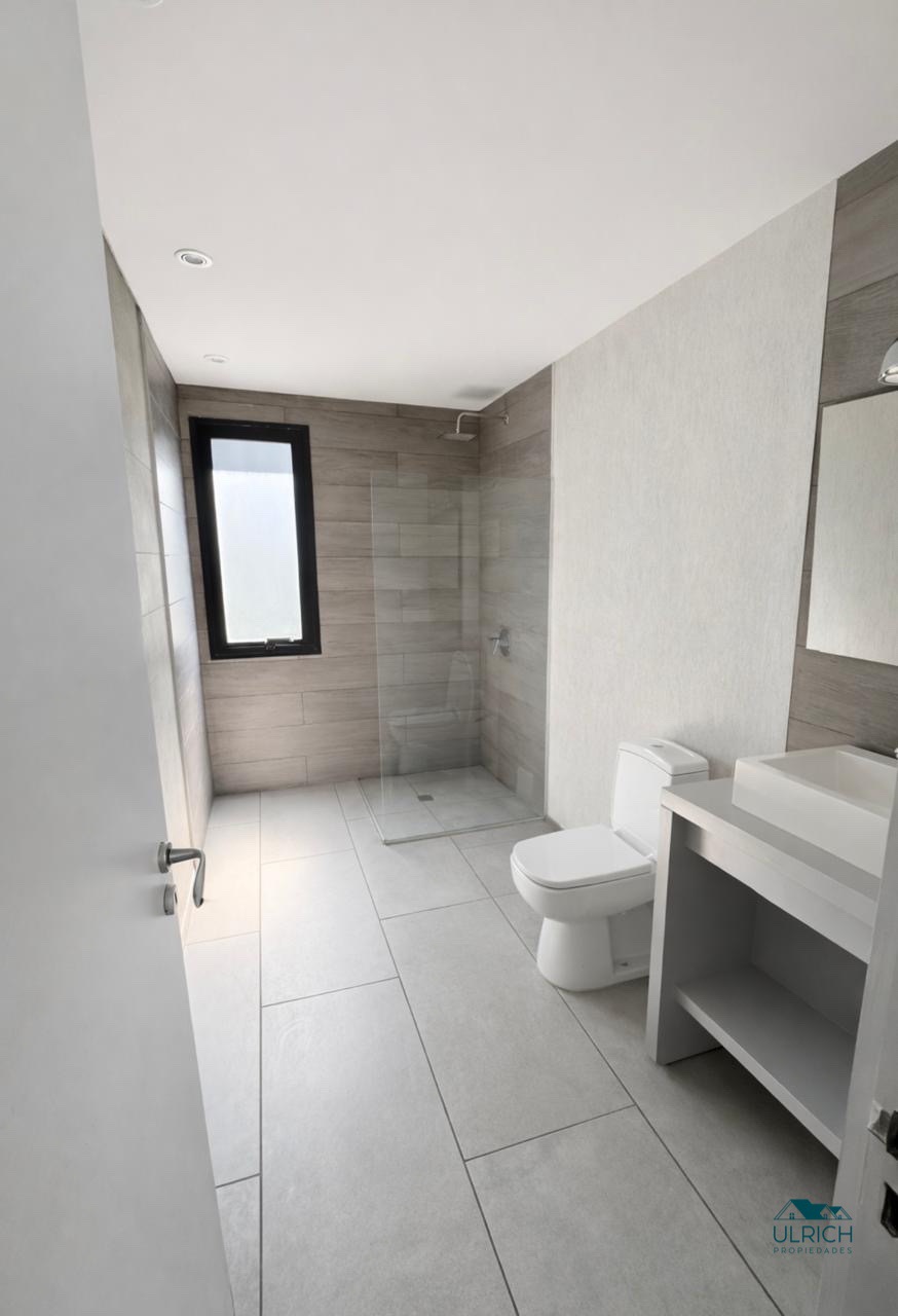 Cuenta con 3 dormitorios uno de ellos en suite y los otros dos dormitorios comparten el otro baño. Cocina, Living y comedor. Posee grandes ventanales de doble vidrio en el living que dan al jardín La casa es still frame. Todo es eléctrico bajo consumo inverter.