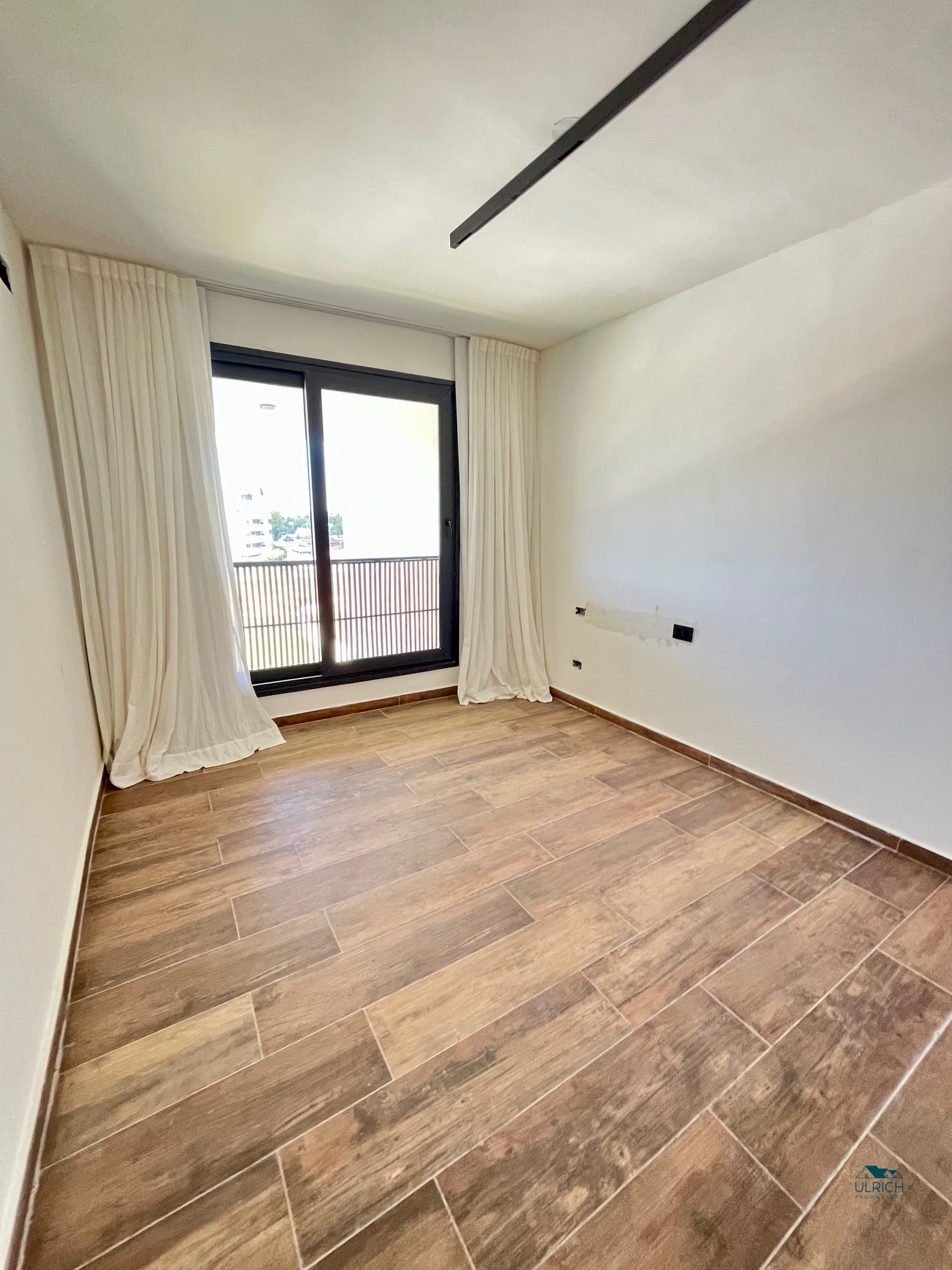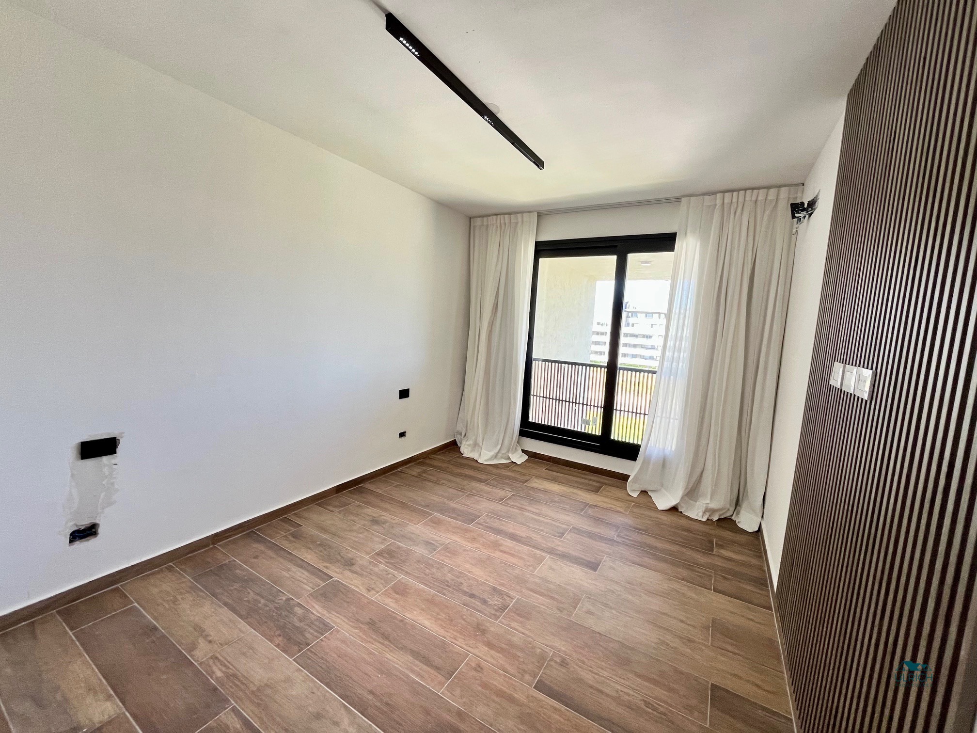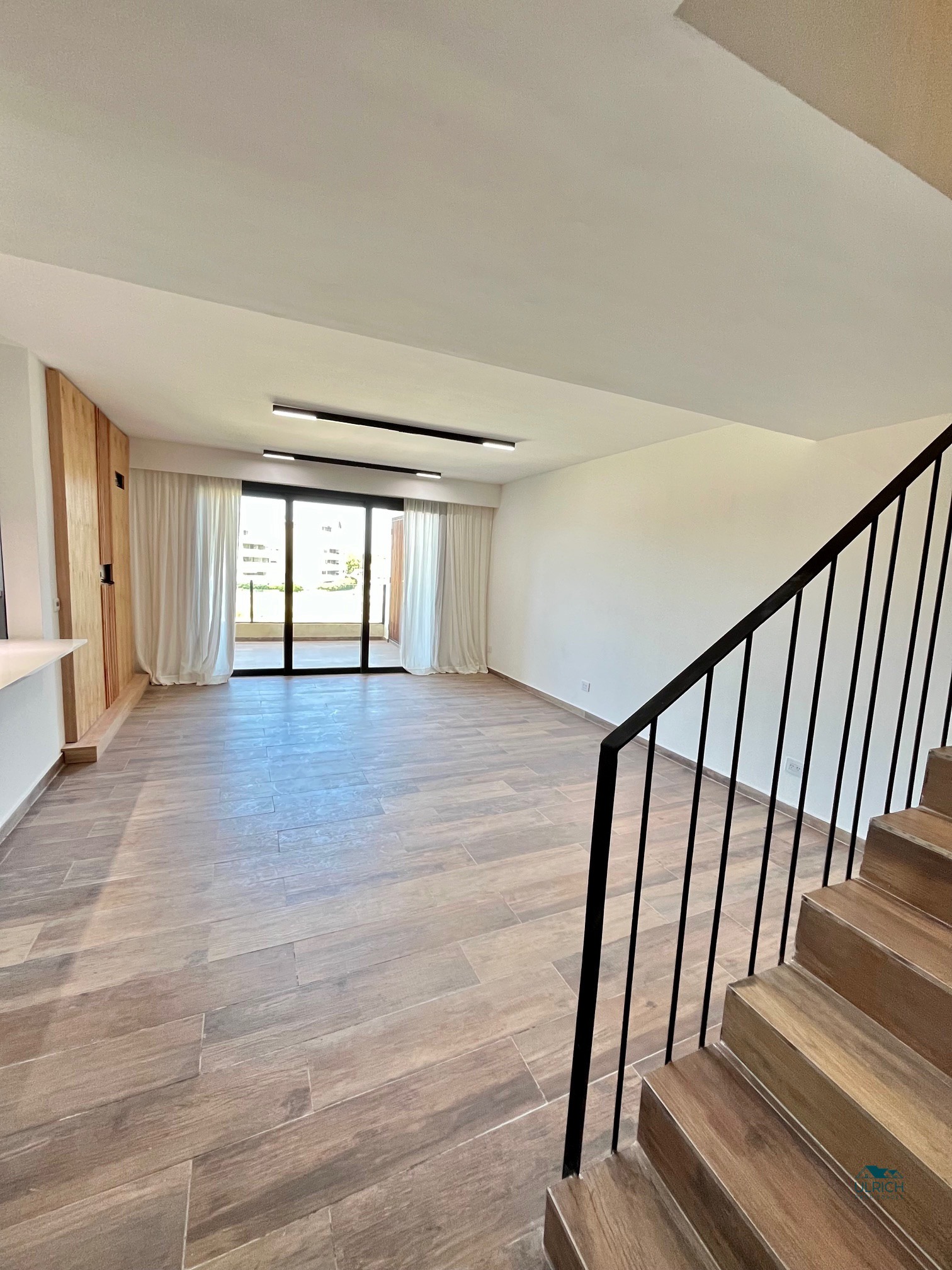 Cortinas blackout en dormitorios y cortinas de tela en living. Luminarias.